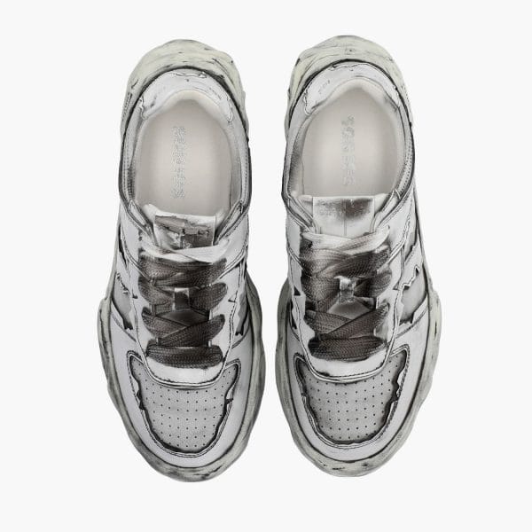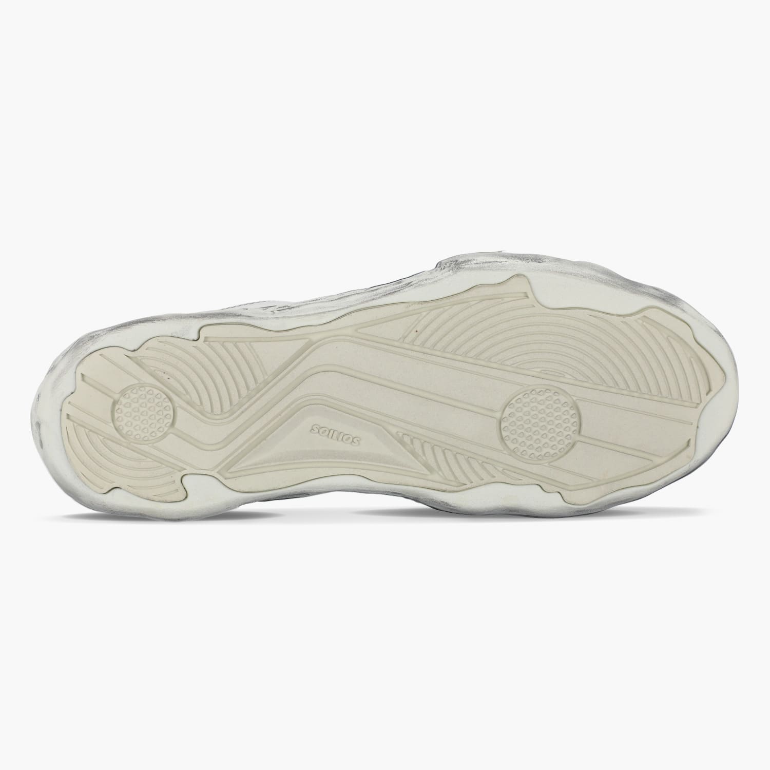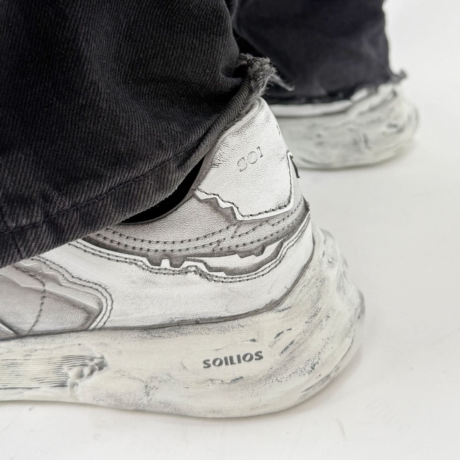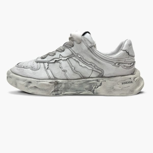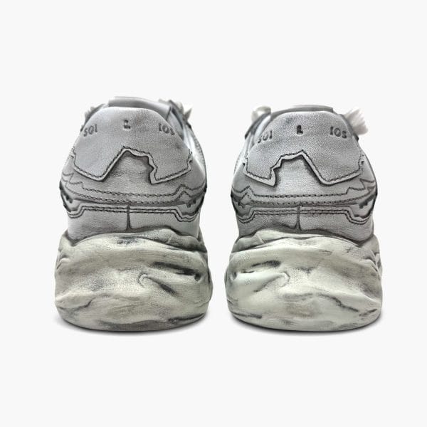 Using the classic German trainer design as a prototype, the outsole was recreated from a historic plaster statue. The irregular cuts of each part reflect that image, and the three-dimensional feel of an old-fashioned plaster sculpture, which is handcrafted one pair at a time, are expressed through a spraying process to create a unique and innovative design. The sole is lighter than it looks, softer, and more resilient than it looks, and is comfortable to wear.